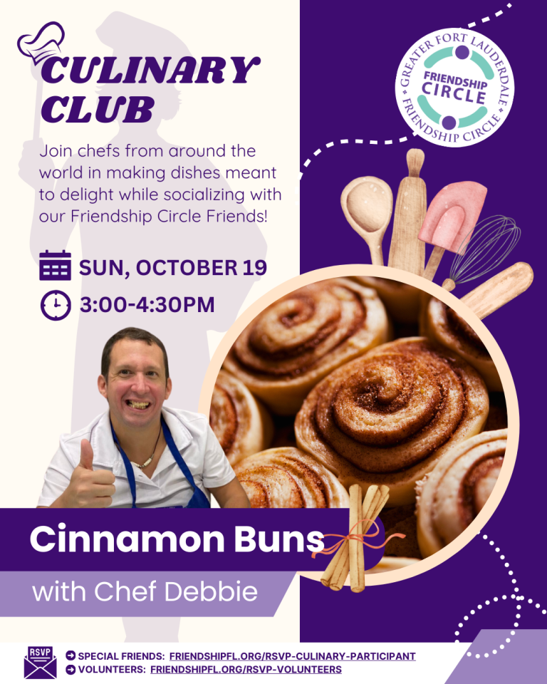 Join us on Sunday, October 19 as we make Cinnabon Buns with Chef Debbie while socializing with our amazing Friendship Circle friends!