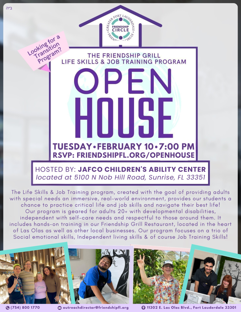 We’re thrilled to invite you to our Transition Open House for the Friendship Circle Life Skills & Job Training Program on Tuesday, February 10!
